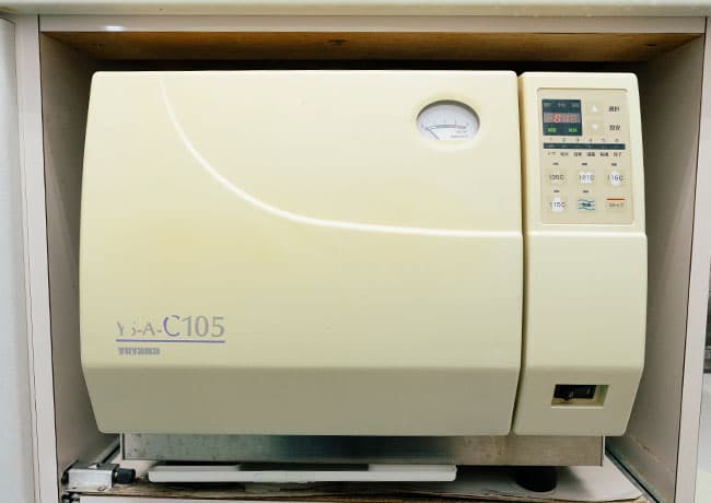 治療で使用した器具などを滅菌する機器です。