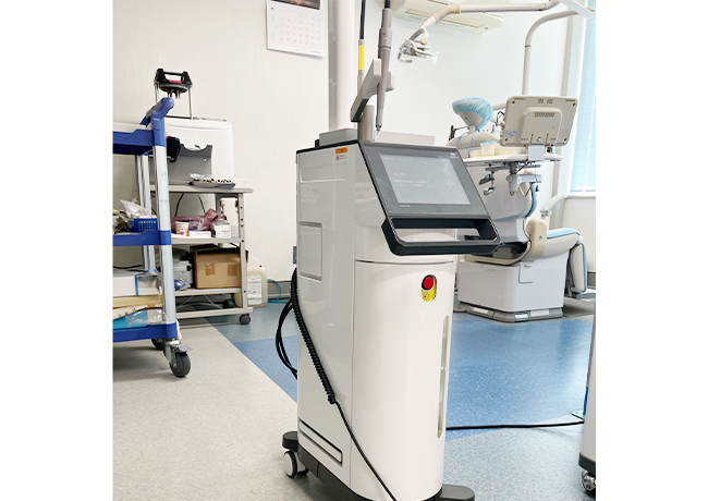 さまざまな治療に使用するレーザー装置です。痛みを少なくすることができ、患者様への負担も軽くなります。