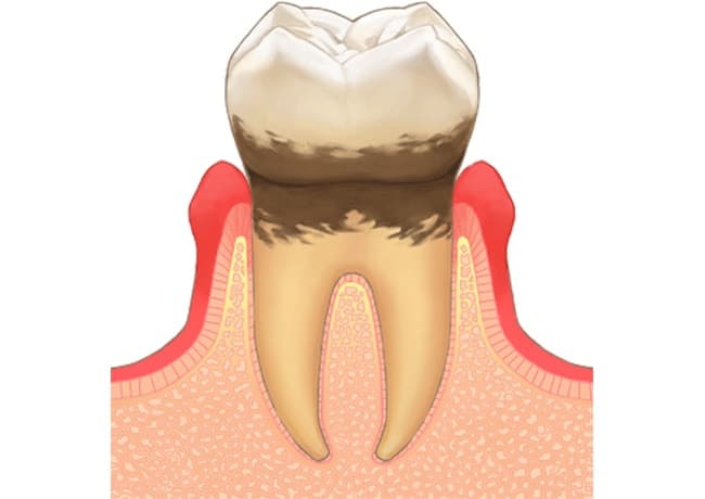 歯槽骨のほとんどが失われ、歯を支えること自体が難しい状態です。歯根部分に膿が溜まっているため、歯ぐきを押すと漏れ出すときもあります。最終的に歯が抜け落ちるリスクもあります。